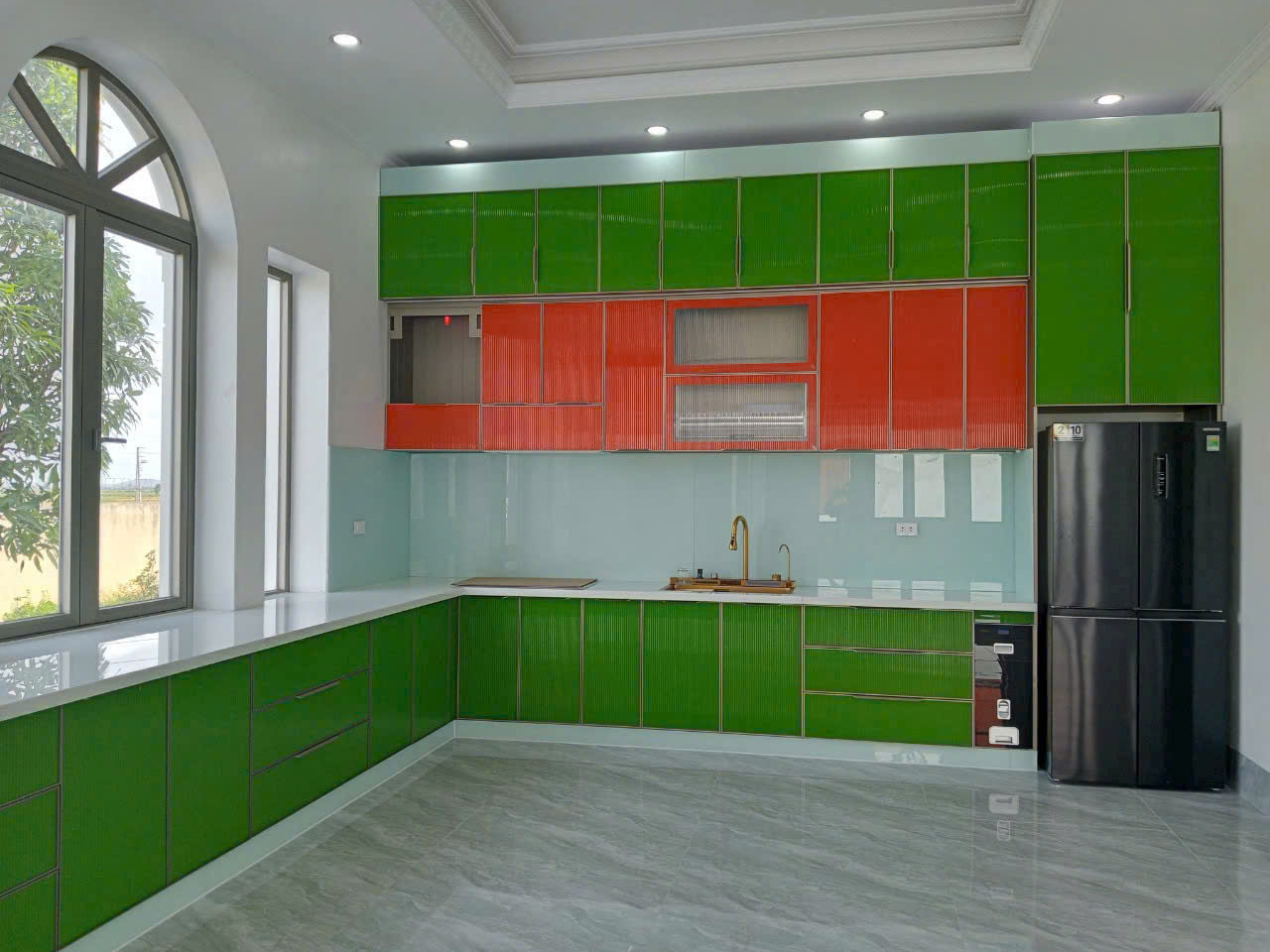 Tủ bếp hiện đại nhôm kính